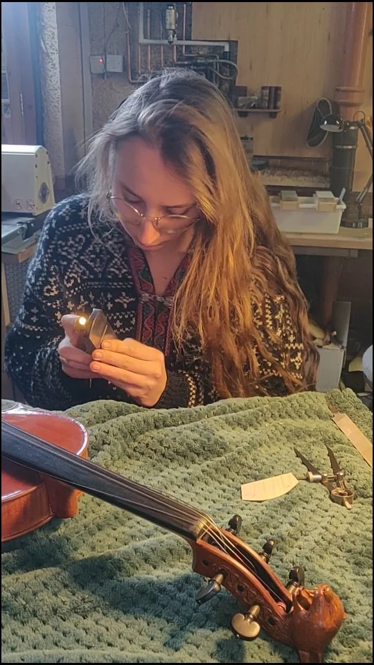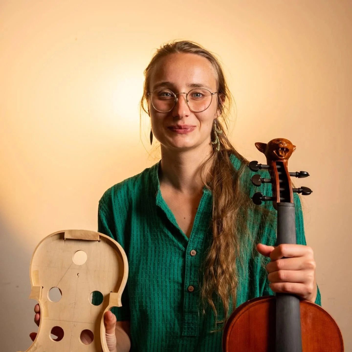 I specialise in making fine violins, violas and celli as well as crafting more folk or baroque inspired instruments and have a passion for decorative head carvings and reliefs.